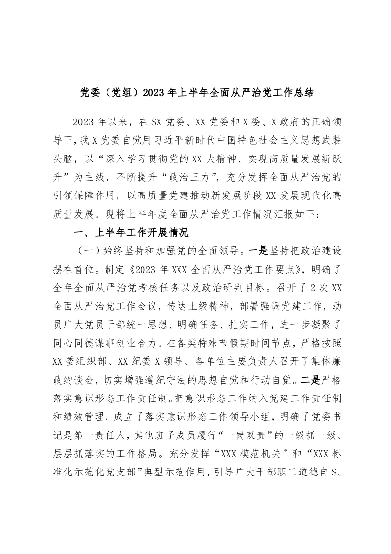 / 党委(党组)2023年上半年全面从严治党工作总结