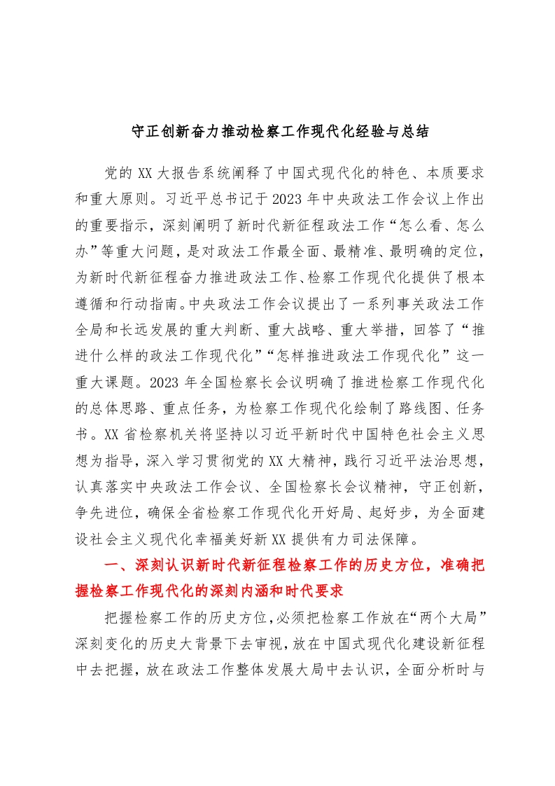 / 守正创新奋力推动检察工作现代化经验与总结