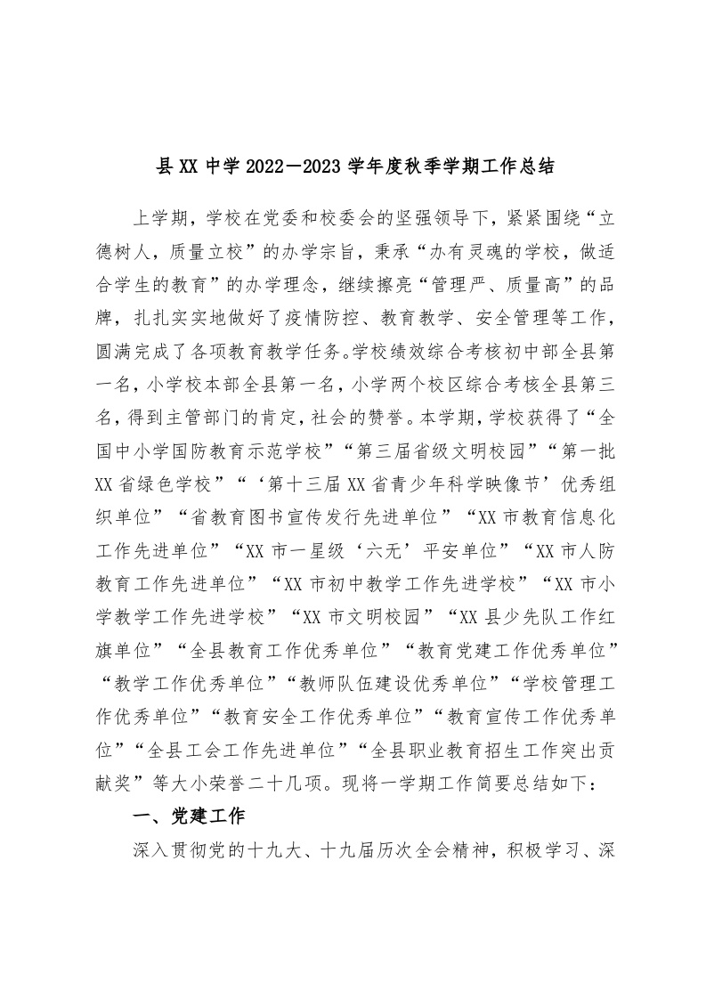 / 县XX中学2022-2023学年度秋季学期工作总结