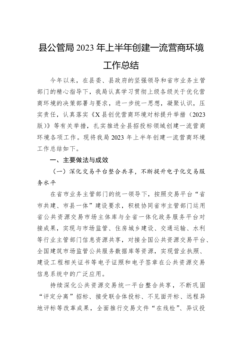 / 县公管局2023年上半年创建一流营商环境工作总结