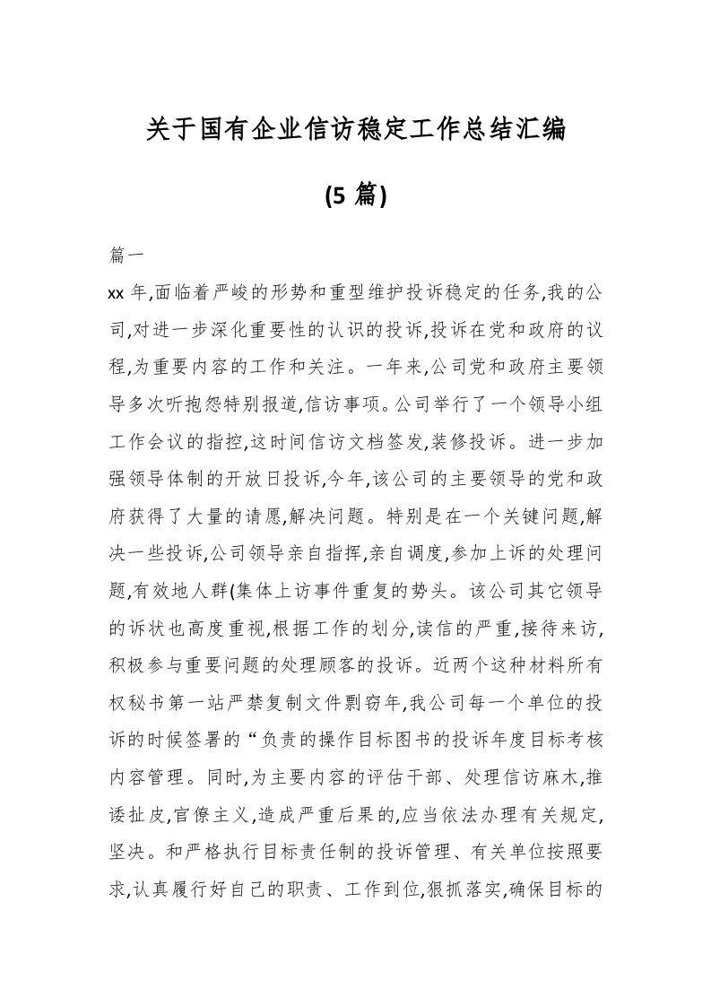 / (5篇)关于国有企业信访稳定工作总结汇编