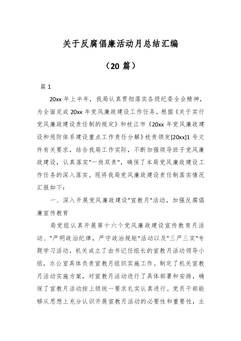 / (20篇)关于反腐倡廉活动月总结汇编