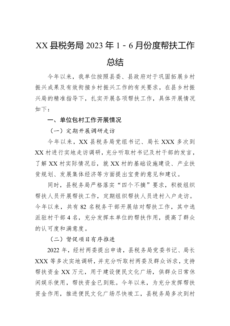 / XX县税务局2023年1-6月份度帮扶工作总结