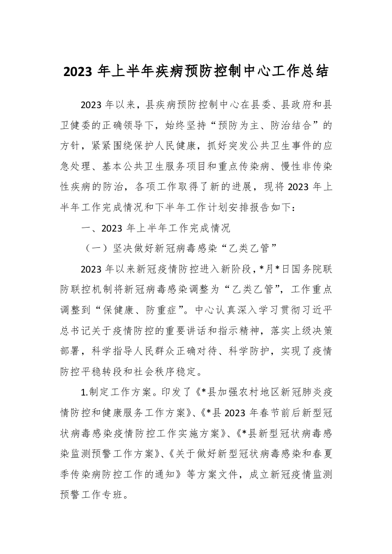 / 2023年上半年疾病预防控制中心工作总结