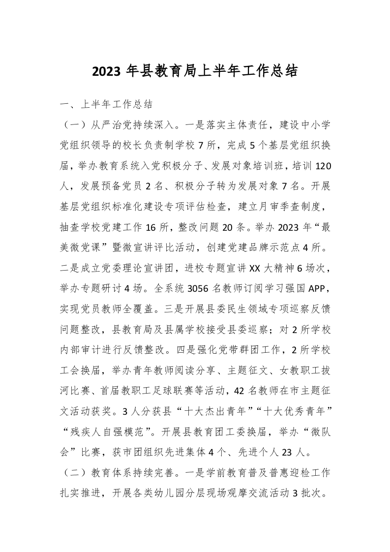/ 2023年县教育局上半年工作总结
