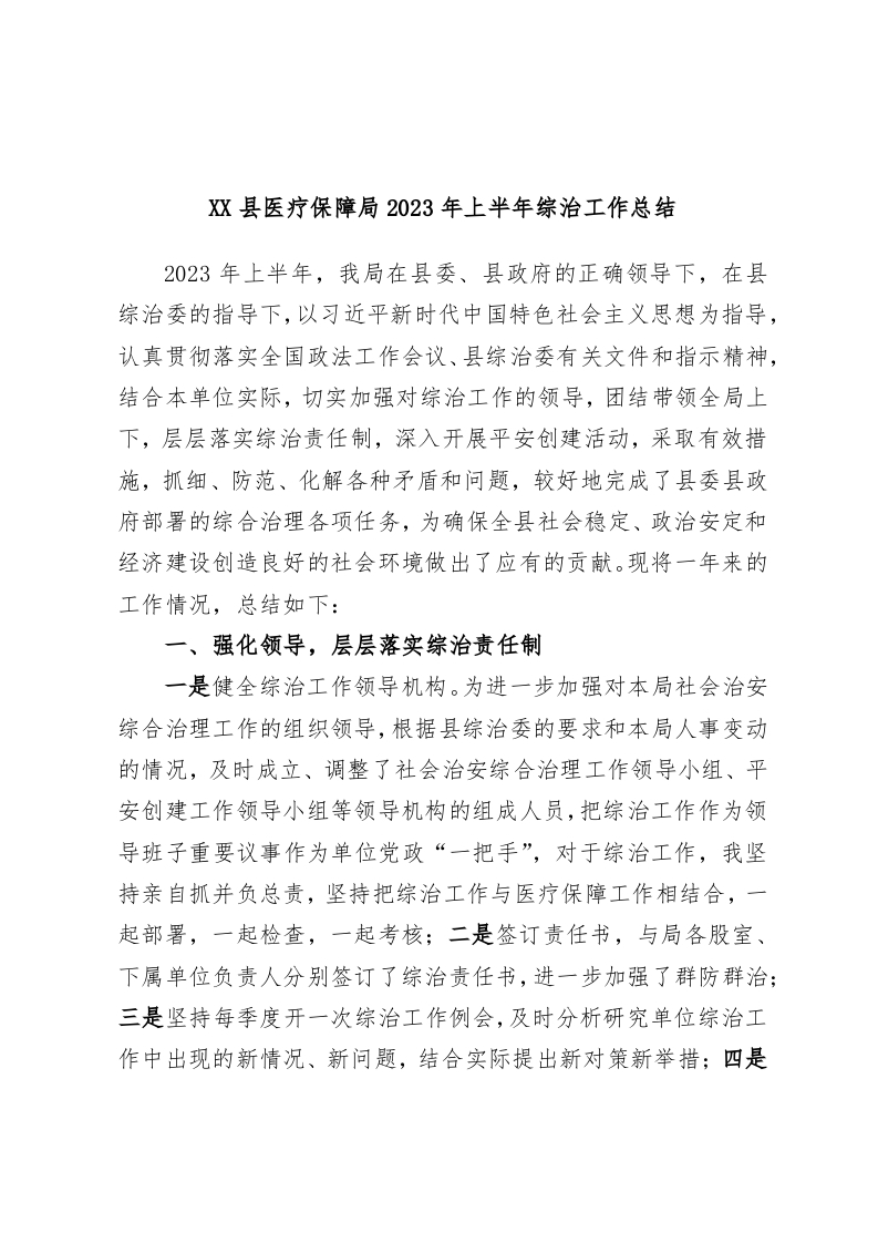 / XX县医疗保障局2023年上半年综治工作总结