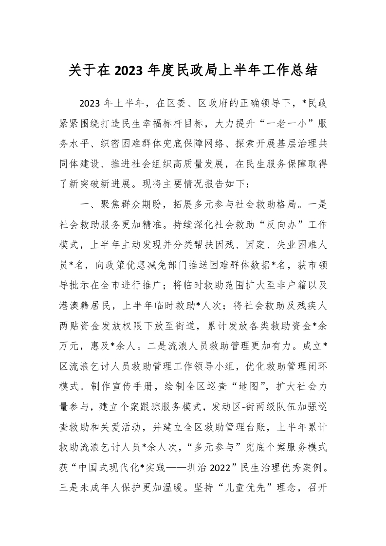 / 关于在2023年度民政局上半年工作总结