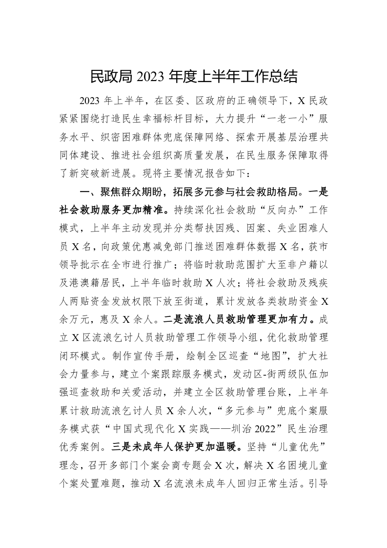 / 民政局2023年度上半年工作总结