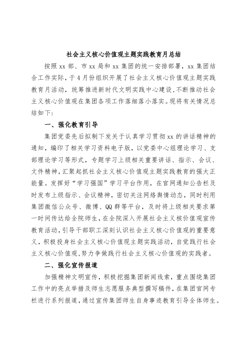 / 社会主义核心价值观主题实践教育月总结