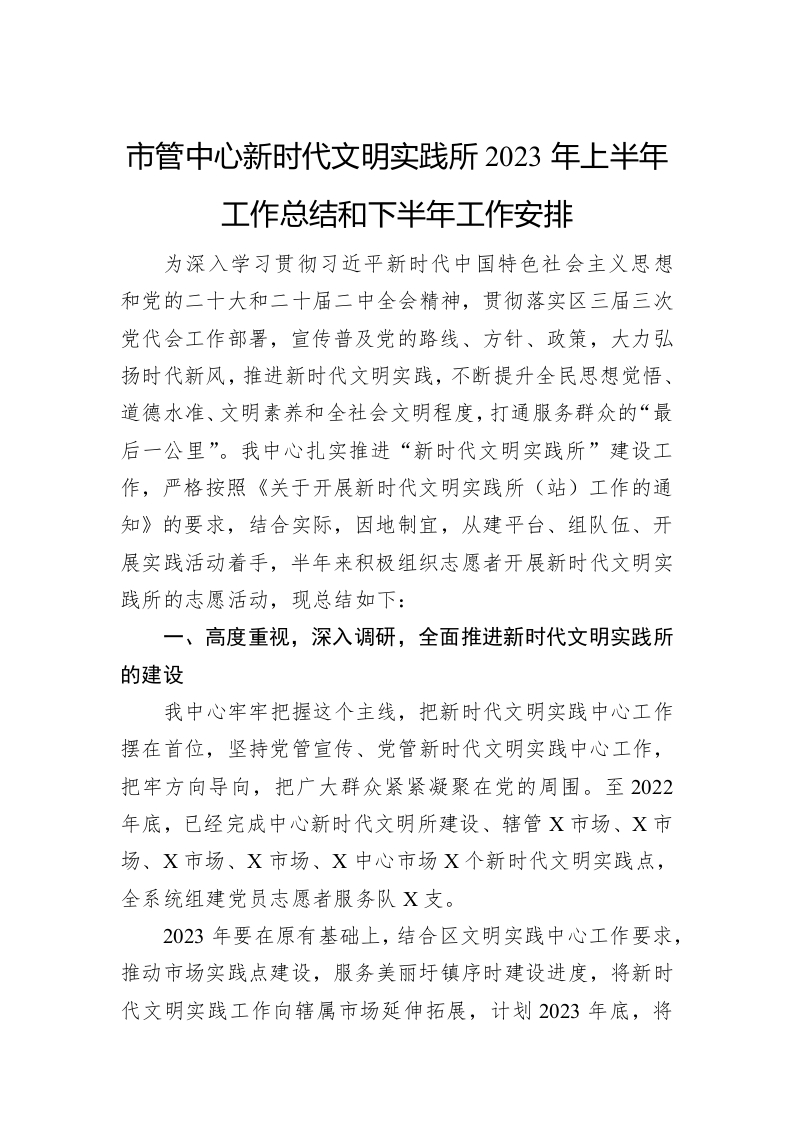 / 市管中心新时代文明实践所2023年上半年工作总结和下半年工作安排