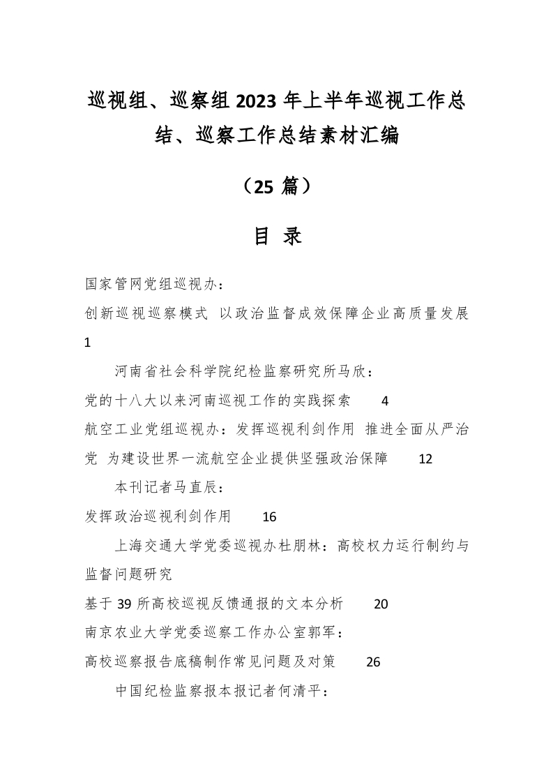 / (25篇)巡视组、巡察组2023年上半年巡视工作总结、巡察工作总结素材汇编