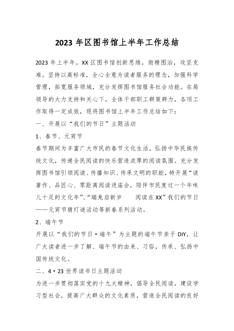 / 2023年区图书馆上半年工作总结