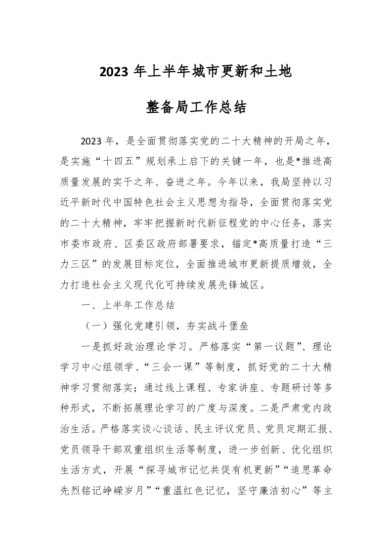 / 2023年上半年城市更新和土地整备局工作总结