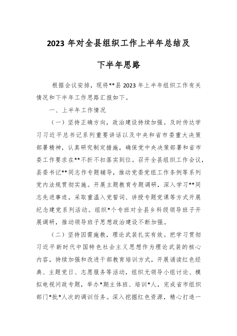 / 2023年对全县组织工作上半年总结及下半年思路