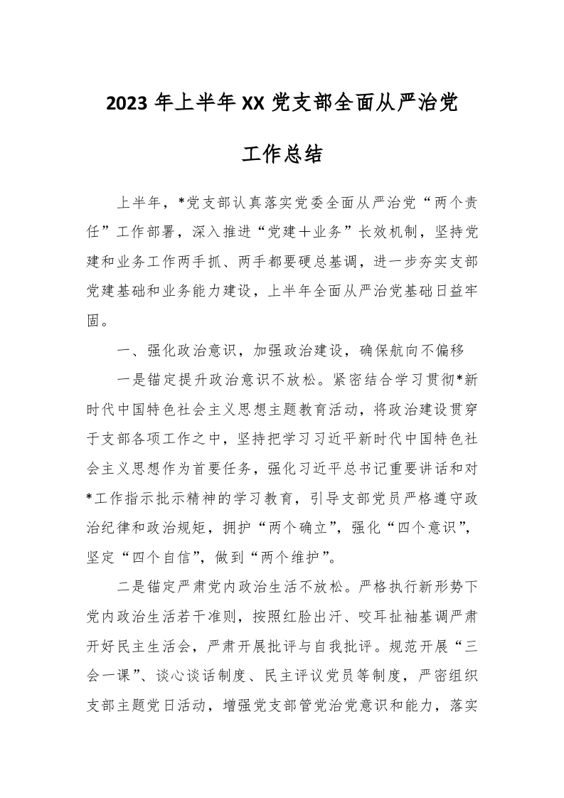 / 2023年上半年XX党支部全面从严治党工作总结