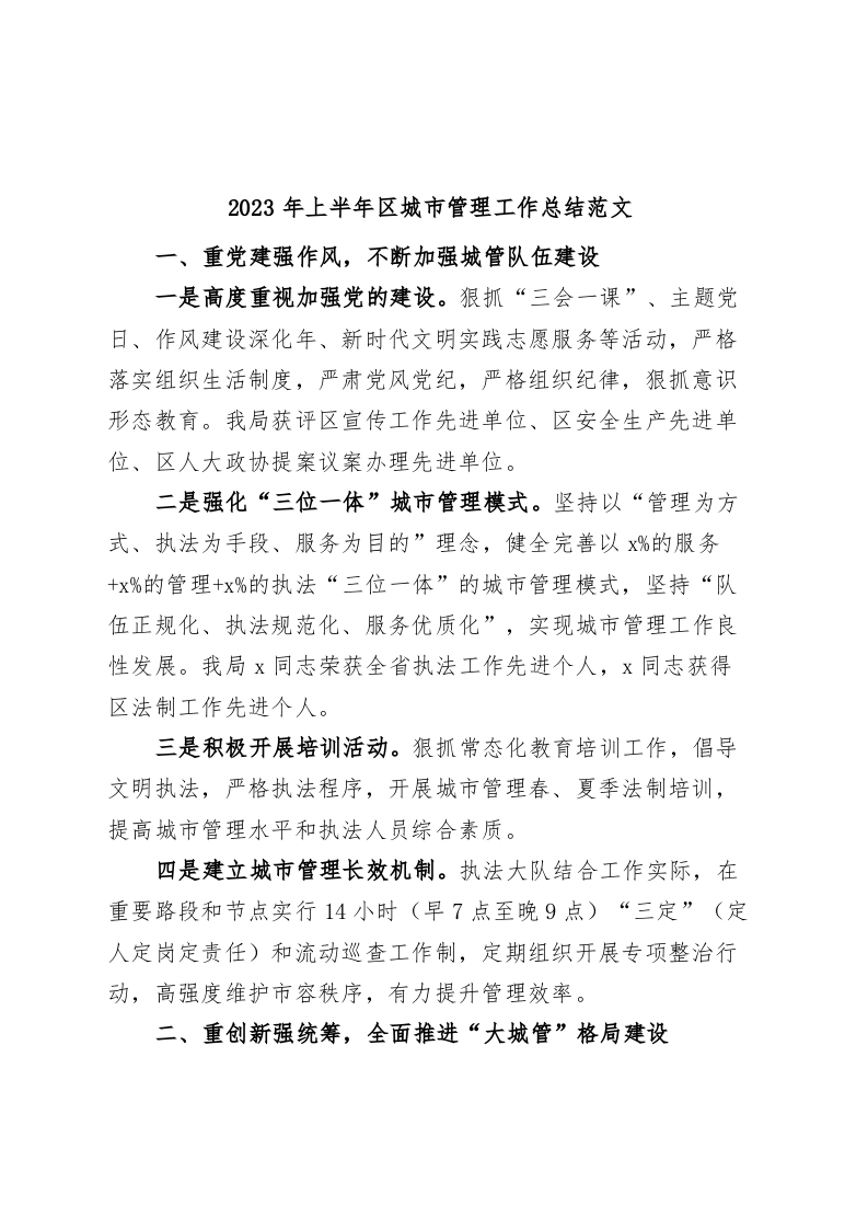 / 2023年上半年区城市管理工作总结城管局汇报报告