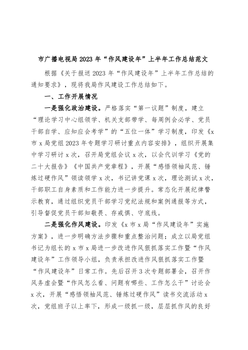 / 2023年作风建设年上半年工作总结汇报报告