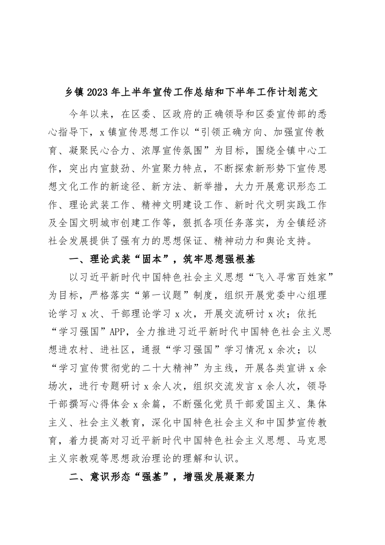 乡镇2023年上半年宣传工作总结和下半年计划(汇报报告)