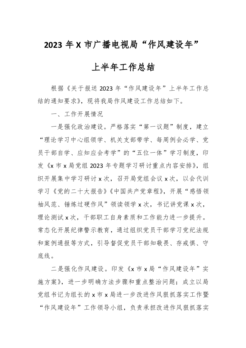 / 2023年X市广播电视局“作风建设年”上半年工作总结