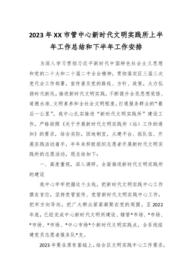 / 2023年XX市管中心新时代文明实践所上半年工作总结和下半年工作安排