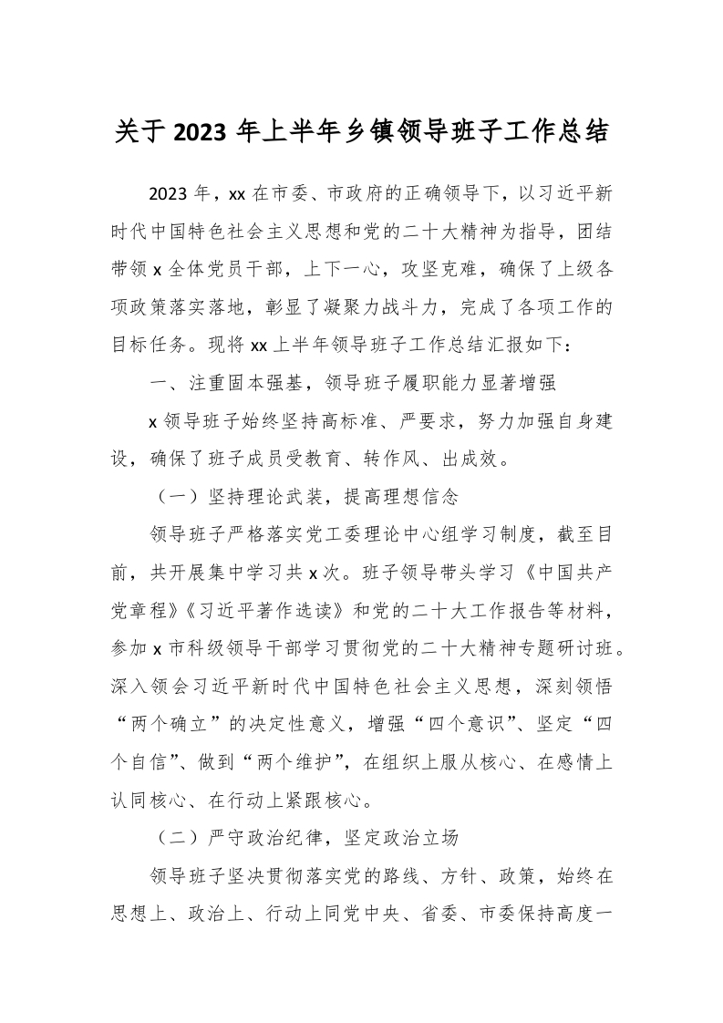 / 关于2023年上半年乡镇领导班子工作总结