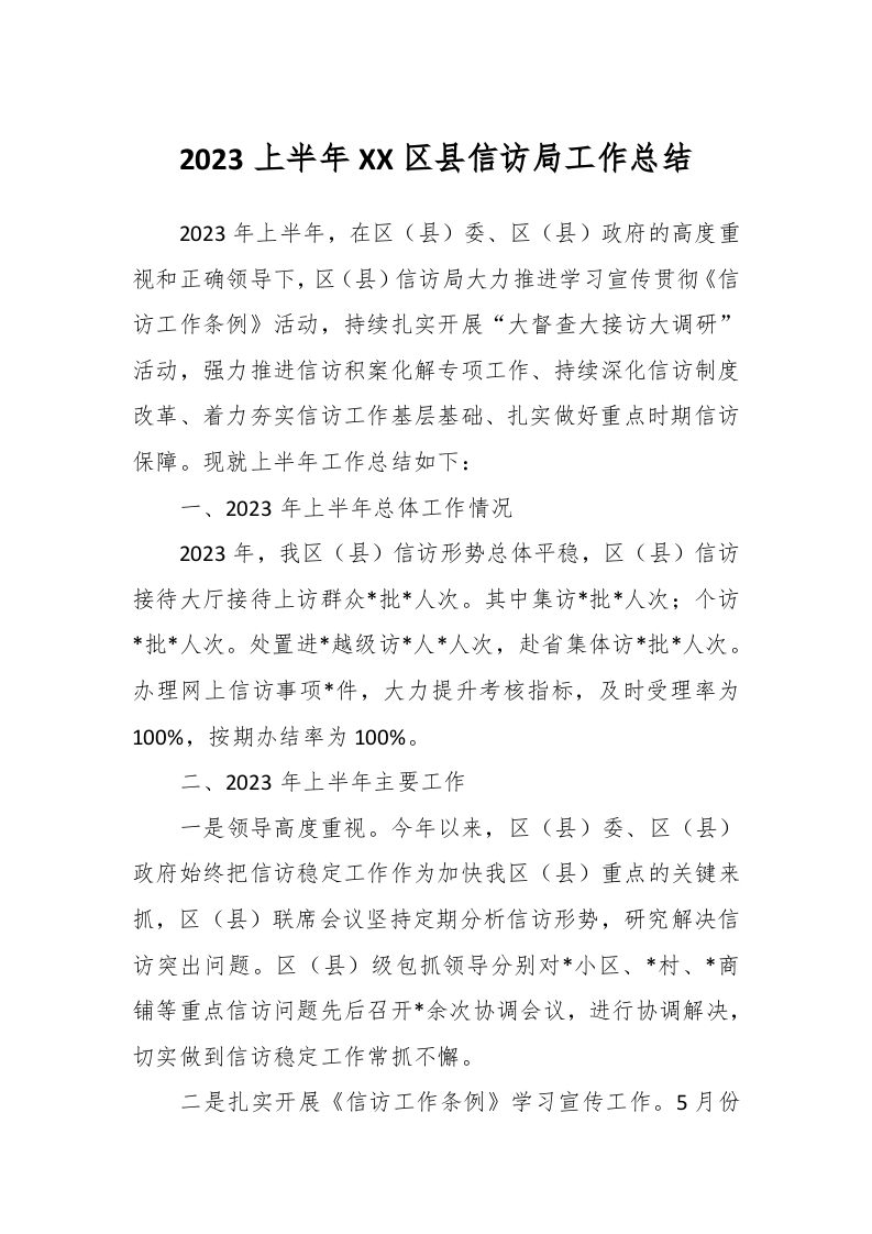 / 2023上半年XX区县信访局工作总结