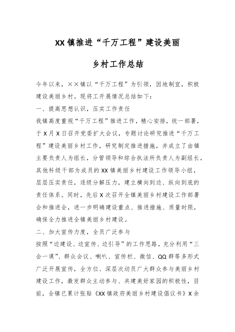 / XX镇推进“千万工程”建设美丽乡村工作总结