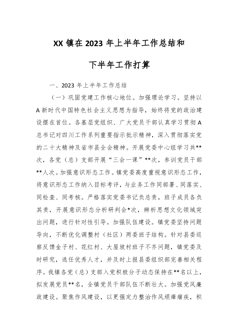 / XX镇在2023年上半年工作总结和下半年工作打算