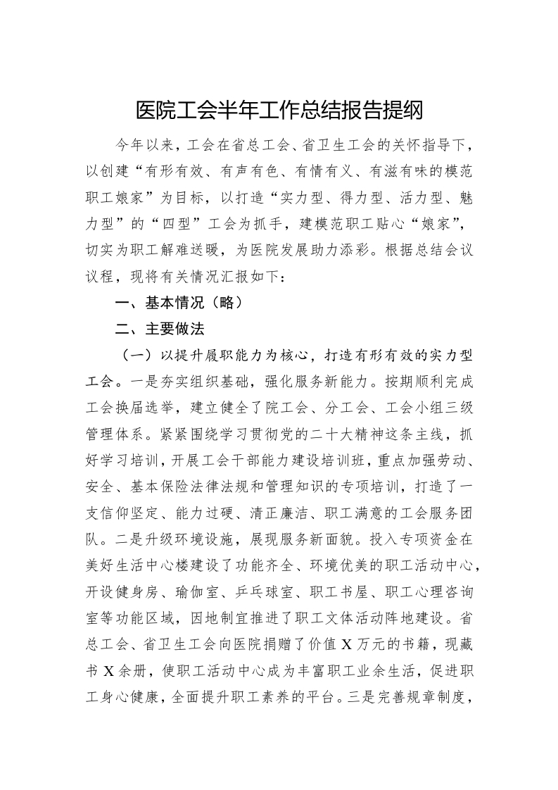 / 医院工会半年工作总结报告提纲