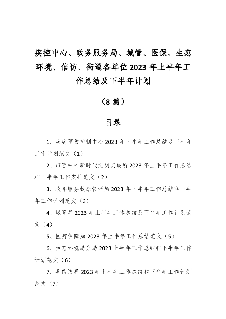 (8篇)疾控中心、政务服务局、城管、医保、生态环境、信访、街道各单位2023年上半年工作总结及下半年计划