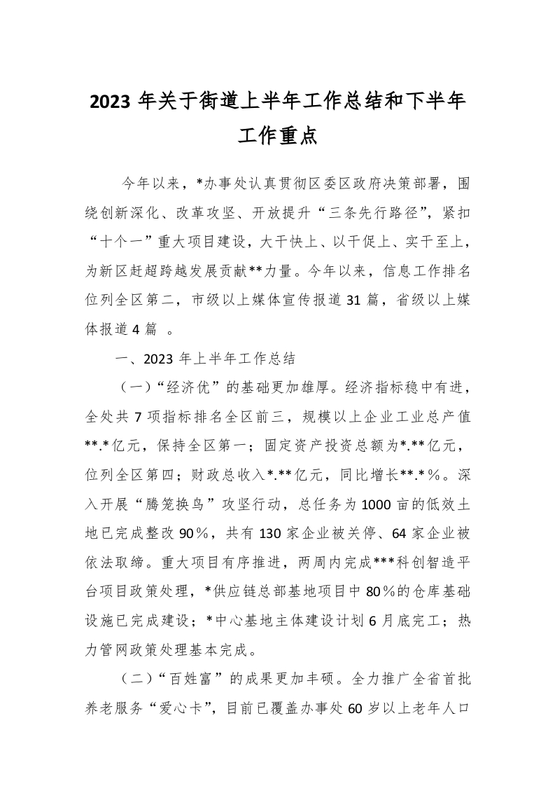 / 2023年关于街道上半年工作总结和下半年工作重点