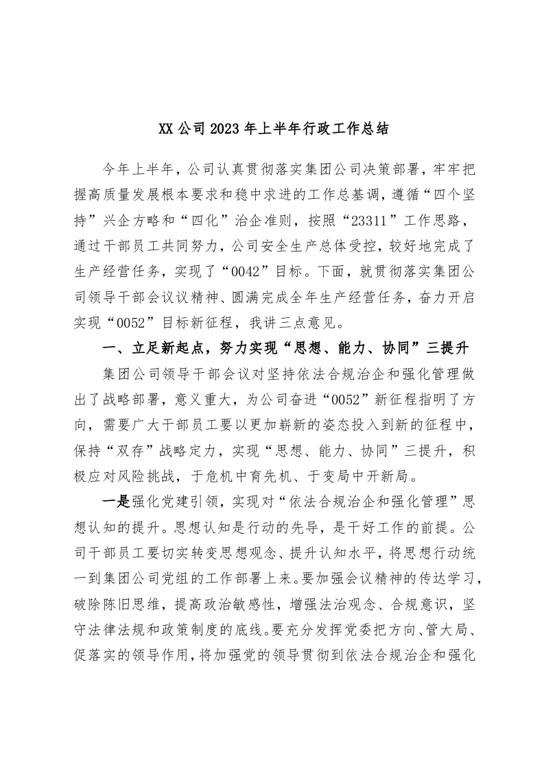 / XX公司2023年上半年行政工作总结