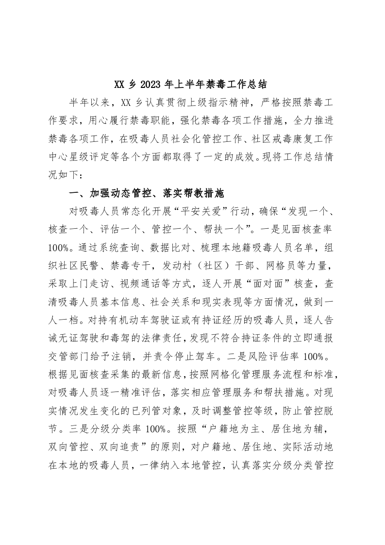 / XX乡2023年上半年禁毒工作总结