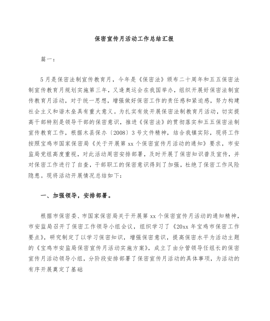 / 保密宣传月活动工作总结汇报