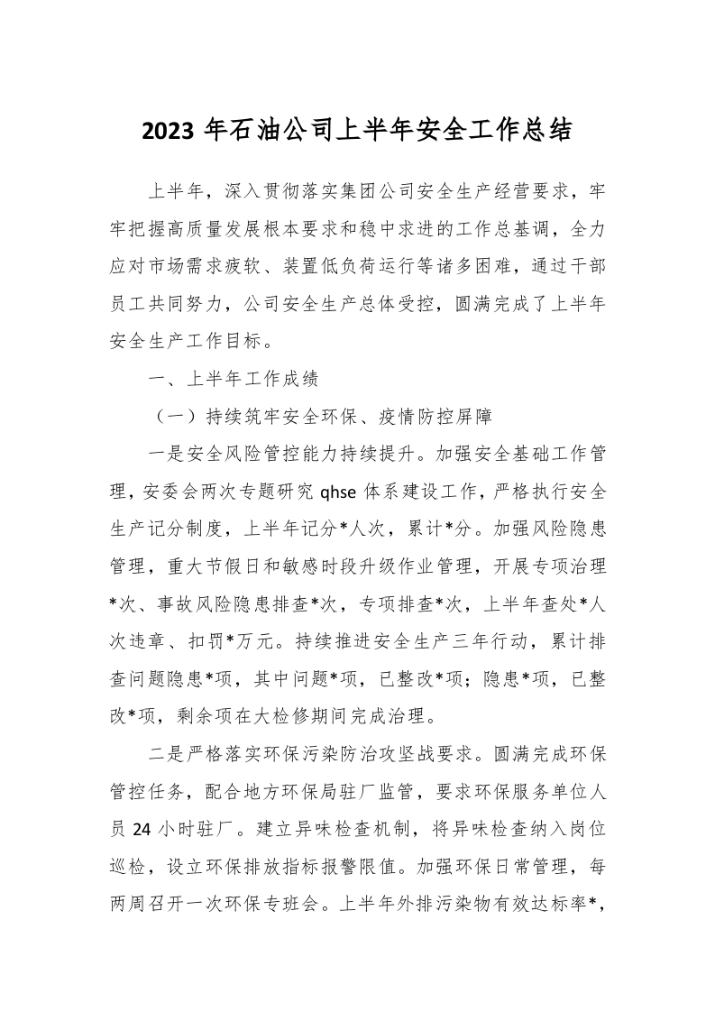 / 2023年石油公司上半年安全工作总结