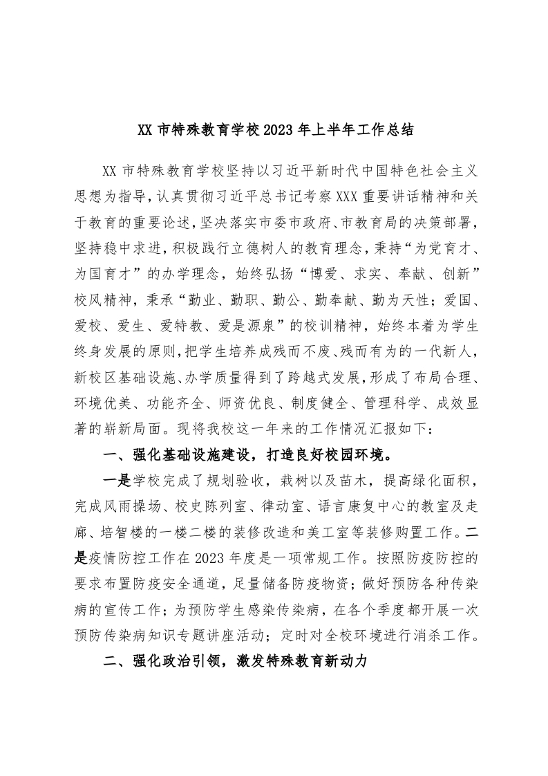 / XX市特殊教育学校2023年上半年工作总结