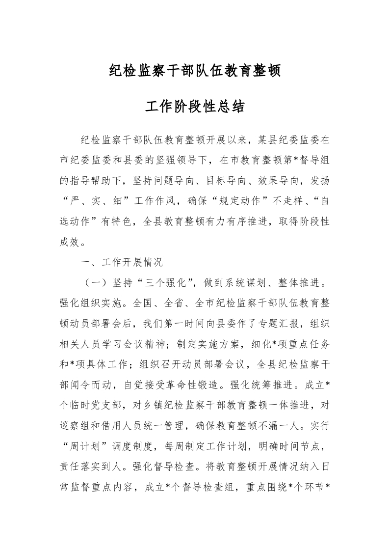 / 纪检监察干部队伍教育整顿工作阶段性总结