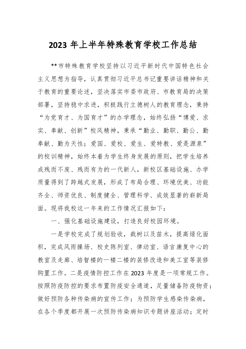 / 2023年上半年特殊教育学校工作总结