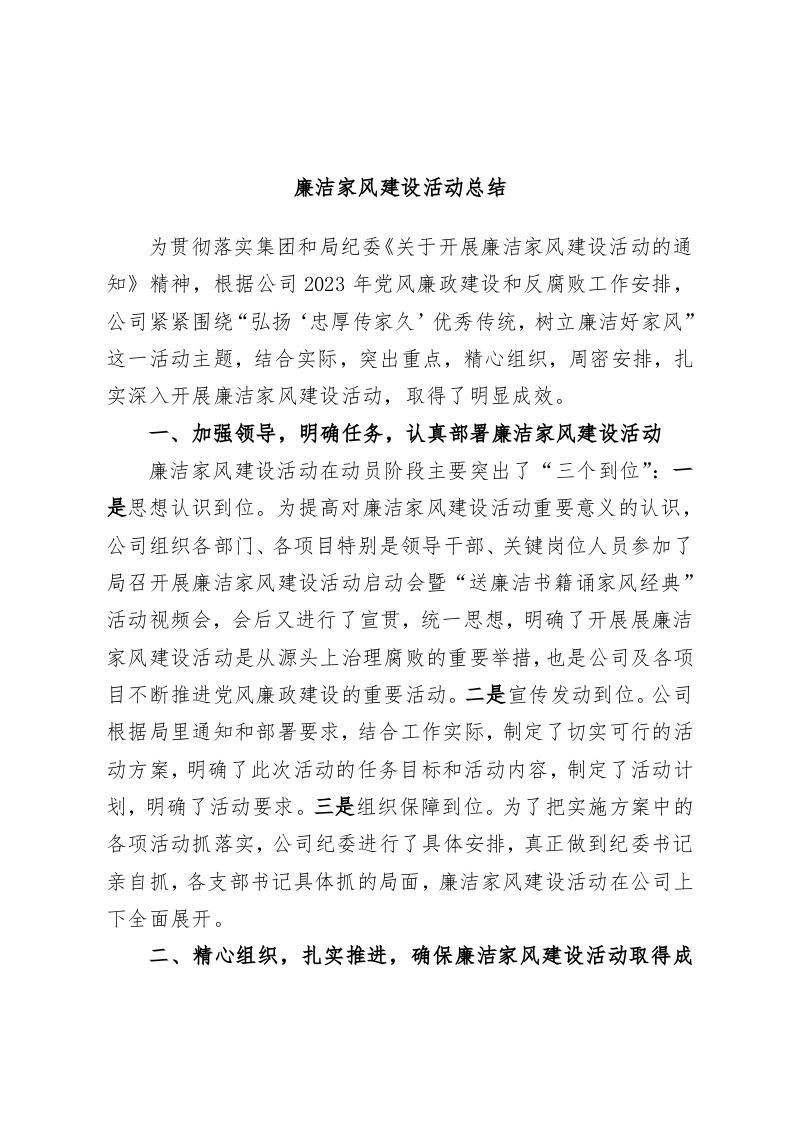 廉洁家风建设活动总结