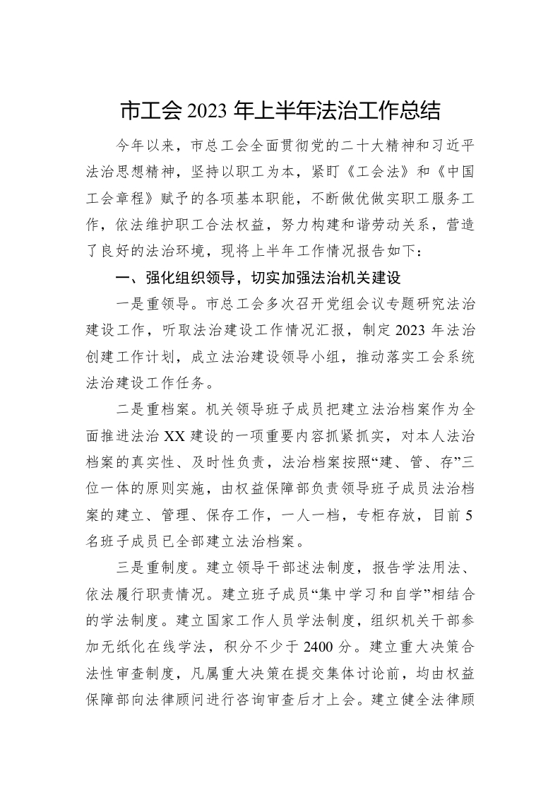 / 市工会2023年上半年法治工作总结