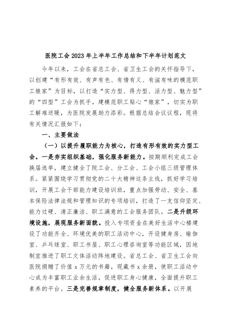 / 医院工会2023年上半年工作总结和下半年计划(汇报报告)
