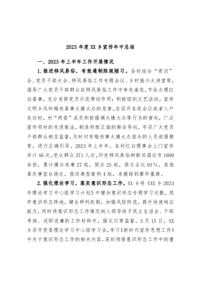 / 2023年度XX乡宣传年中总结