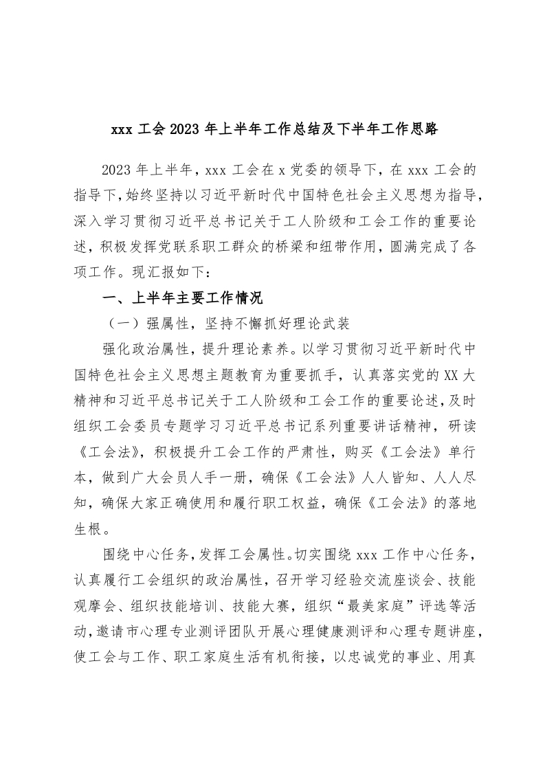 / xxx工会2023年上半年工作总结及下半年工作思路