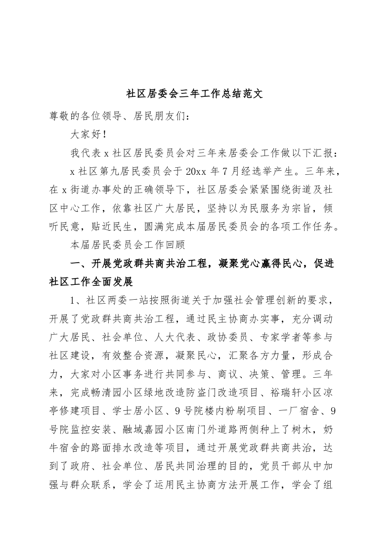 / 社区居委会三年工作总结换届汇报报告