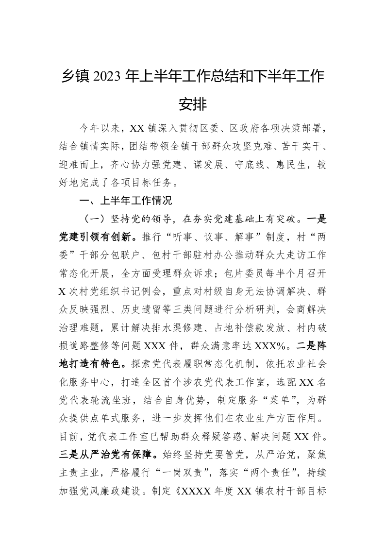 乡镇2023年上半年工作总结和下半年工作安排