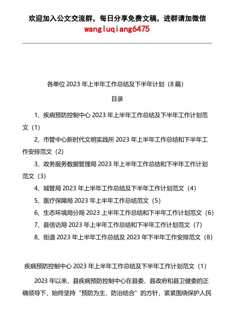 / (8篇)各单位2023年上半年工作总结及下半年计划