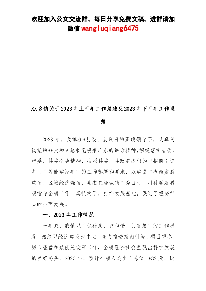 / 乡镇2023年上半年工作总结及2023年下半年工作设想