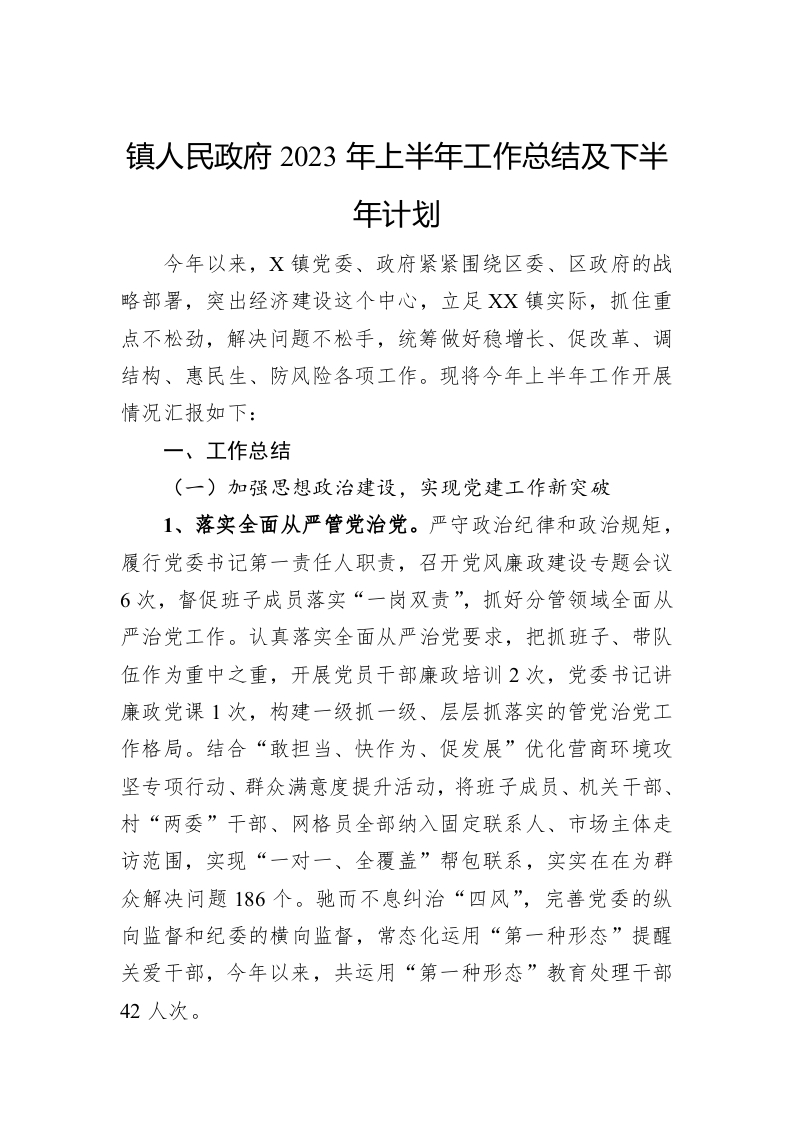 / 镇人民政府2023年上半年工作总结及下半年计划