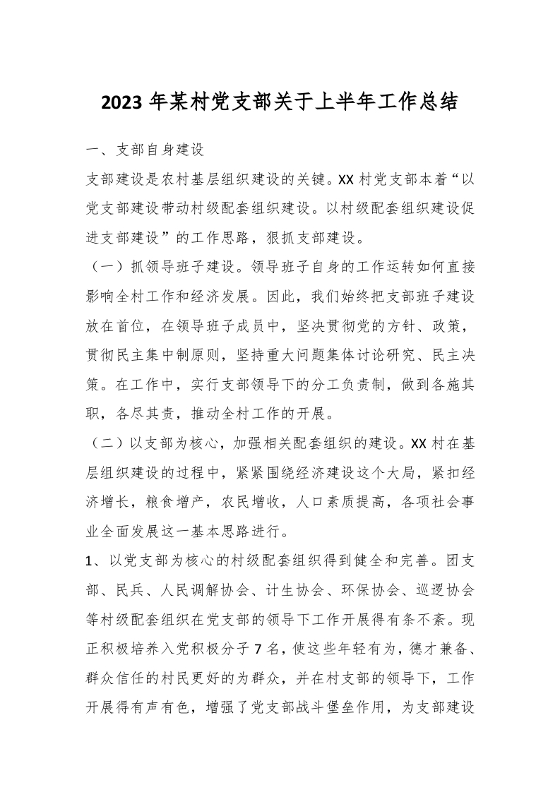 / 2023年某村党支部关于上半年工作总结