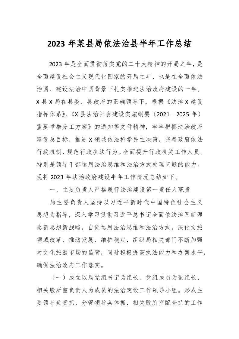 / 2023年某县局依法治县半年工作总结